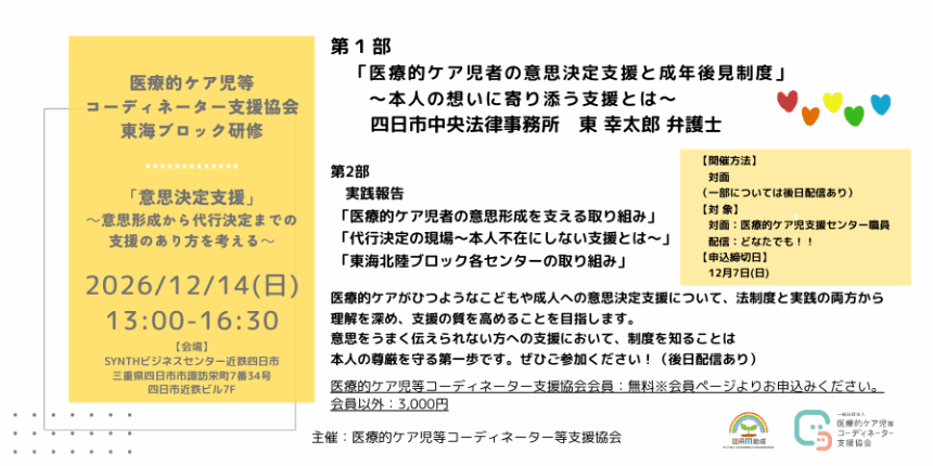 【問合せ】医療的ケア児等コーディネーター支援協会事務局